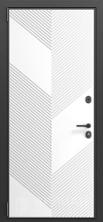 Входная железная дверь с белым цветом внешней панели и глубокой фрезеровкой на панели №13