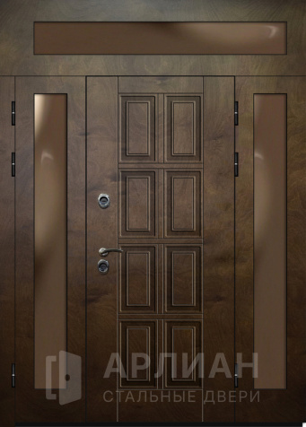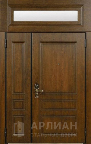 Металлическая входная дверь в коттедж с верхней фрамугой №10