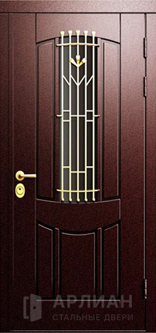 Двустворчатая входная дверь металлическая со стеклом №17