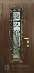 Кованная дверь коричневого цвета с патиной и витражом №27