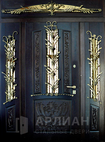 Стальная входная дверь с ковкой и решеткой в полной комплектации №52