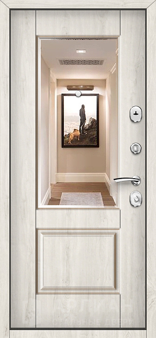 Белая дверь входная металлическая с зеркалом внутри и усиленными петлями №76