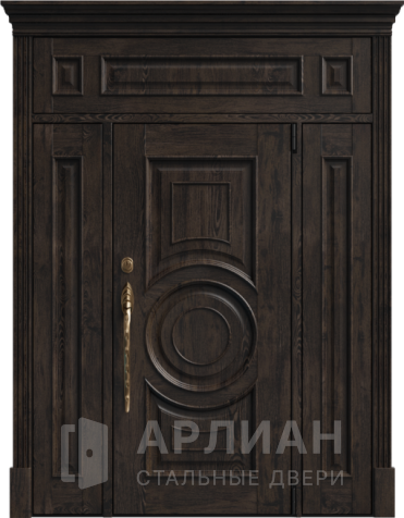Парадная дверь с золотой патиной и фрамугой №408