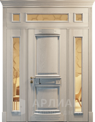 Металлическая входная дверь в коттедж с верхней фрамугой №10