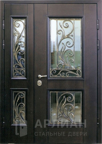 Двустворчатая входная дверь со стеклопакетом №18